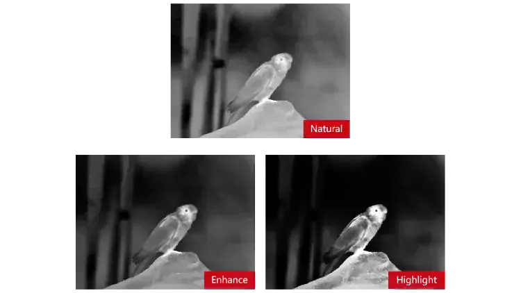 Высокая информативность в любых погодных условиях. Благодаря высокой температурной чувствительности сенсора и OLED-дисплею на органических светодиодах, тепловизор эффективно работает даже в очень плохих погодных условиях и при самых низких температурах (до -30 C). А с помощью 6 цветовых палитр, 3 сюжетных режимов и тонкой регулировке яркости и контраста будет легко обеспечить качественную визуализацию на любой охоте. Прибор чётко покажет тепловой след и точно идентифицирует зверя на снегу, в тумане или в сыром осеннем лесу.